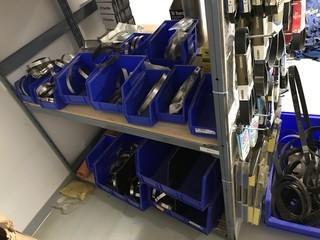 Lot #0560: Contents of (1) Section of EZ-Rect Shelving including Asst. Belts, Hose Clamps, etc.