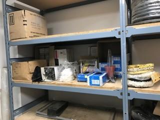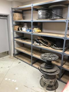 Lot #0545: Contents of EZ-Rect Shelving Including (5) Spools of Hydraulic Hose, Asst. Cleaning Supplies, Lights, etc.