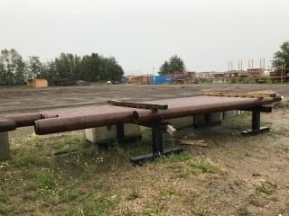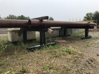 Lot #0941C:     (7) Single Helix 20' w/ Asst. DOM, 9" Pipe, Misc. Helix Piles, (2) Steel Saw Horses