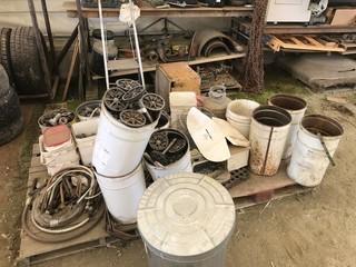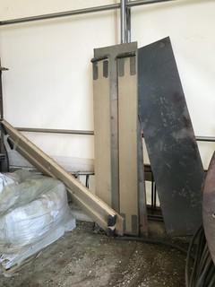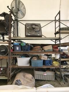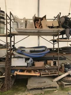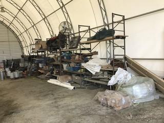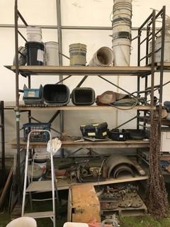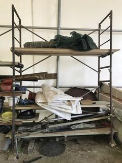 Lot #0535:     Lot of 5 Sections Scaffolding w/ Contents including Flanges, Rollers, Office Chairs, etc.