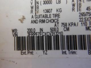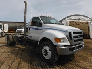Lot #0079: 2012 Ford F750 S/A C&C c/w Cummins 6.7L, 6 Spd, A/C, 11R22.5 Tires. Showing 303,926 Kms.