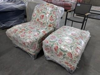 Lot #0139: 2pc. Fabric Arm Chair & Ottoman Set (Floral)