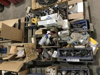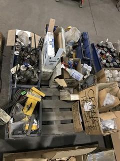 Lot #0778: Pallet of Asst. Grease Tubes, Oil Cans, Belts, Cutting Fluid, etc.
