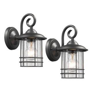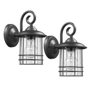 Lot #7055: Alcott Hill Steinmetz 1-Light Outdoor Wall Lantern ALTL3572_33085247) - Set of 2 - Blk