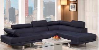 Lot #7955: Poundex Blue Sectional Sofa Set Right Facing Chaise - F7569-1 - Navy