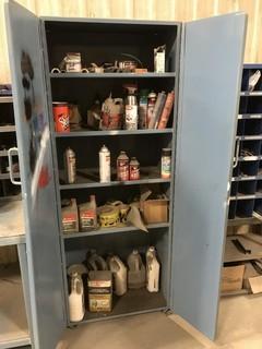 Lot #0456:     2-Door Chop Cabinet w/ Asst. Contents Including Asst. Paints, Aerosols, Caution Tape, etc. **LOCATED IN EDMONTON**