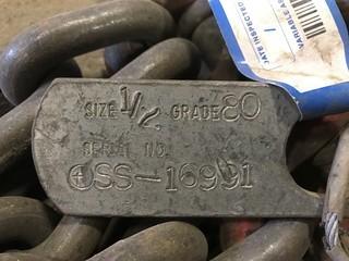 Lot #0368:     84" - 1/2" Lifting Chains, 20,800lb. Capacity, 2 Legs **LOCATED IN EDMONTON**