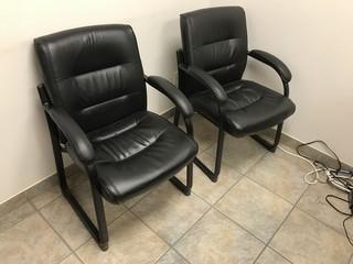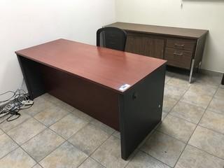 Lot #0565:     Lot of (2) Leather Side Chairs, Double Pedestal Desk, Credenza, Task Chair **LOCATED IN EDMONTON**