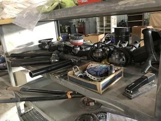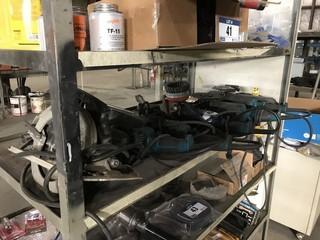 Lot #0042: Lot of (5) Asst. Makita Angle Grinders, (1) Black and Decker Circular Saw, Pry Bars, (3) Hammers, etc. **LOCATED IN INNISFAIL**