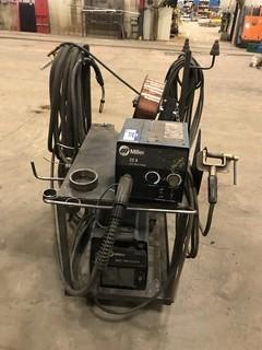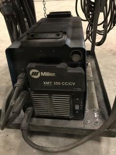 Lot #0217: Miller XMT 350 w/ Miller 22A Wire Feeder, Cart, Hoses, Cords, Guns, etc. **LOCATED IN EDMONTON**