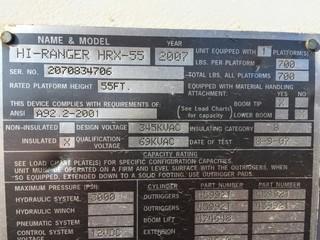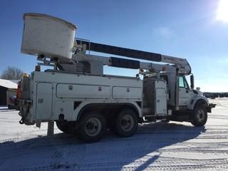 Lot #2107: 2008 International 7500 Series T/A Bucket Truck c/w Maxx Force 10 Diesel, Auto, A/C, Air Ride Susp., Hi-Ranger HRX-55 S/N 2070834706, 315/80R22.5 Front, 11R22.5 Rear Tires.