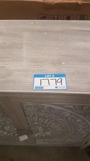 Lot #1779: Mettalic Gray 2-Door Wood Flourished Cabinet