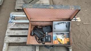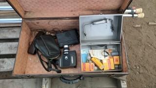Lot #1328: Lot Of Vintage Video Cameras, c/w Antique Travelers Chest, Assorted Crutches