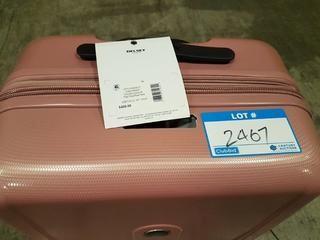 Lot #2467: Delsey 24" Rose Color Hard Sided Spinner Luggage - Top Name Plate Missing