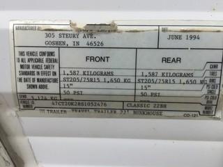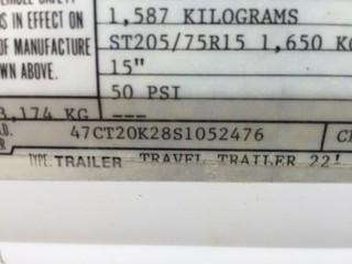 Lot #2627: 1995 Dutchmen T/A Travel Trailer c/w Awning. S/N 47CT20K28S1052476