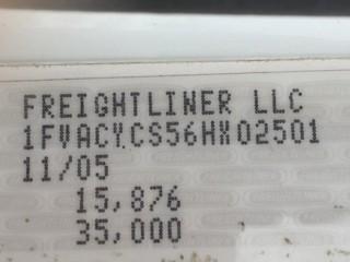 Lot #2365:     2006 Freightliner S/A Gravel Truck c/w Mercedes 230 HP, Auto, 12' Box, 11R22.5 Tires. Showing 69,650 Kms & 2,392 Hours. Safety Expires Aug 2019. S/N 1FVACYCS56HX02501