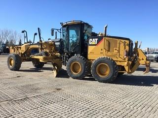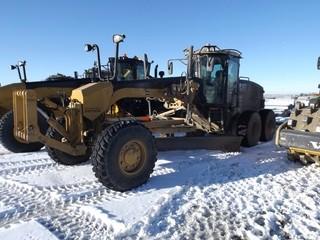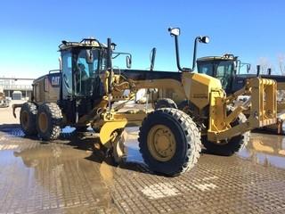 Lot #2410: 2011 Cat 160M VHP Plus AWD Motor Grader c/w 14' Moldboard,WBM Front Hyd. Q.A., Wing, MS Ripper, Bridgestone 17.5R25 Tires. Showing 8,839 Hours. Work Orders Available. Wheatland County. Unit # 638. S/N CAT0160MTD9T00154