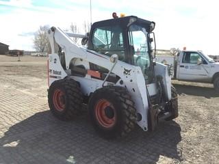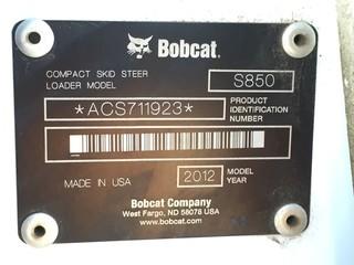Lot #2432: 2012 Bobcat S850 Mini Skid Steer c/w Joystick Control, Keyless Start, A/C, Air Ride, High Flow, Radio, Noise Reduction Pkg. Showing 700 Hours. S/N ACS711923