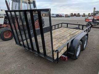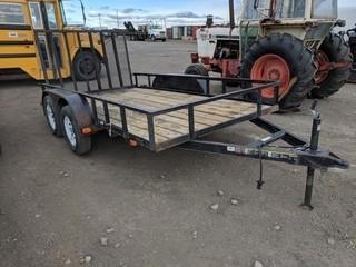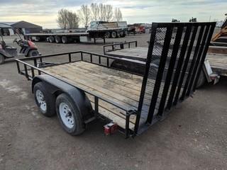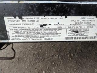 Lot #2484: 2015 Carry-On Trailers 6'6"x12' T/A Ball Hitch Deck Trailer c/w 3,500LB Axles, Metal Sides, Fold Down Ramp, 205/75/15 Tires. S/N 4YMUL1228FN010223