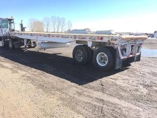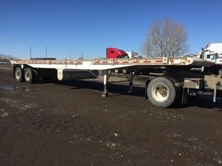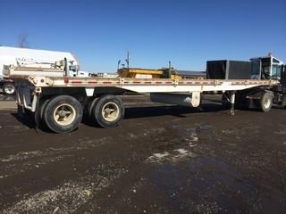 Lot #2402: Fruehauf T/A Float Trailer c/w (9) Ratches Each Side, Live Roll, 10-20 Tires. Work Orders Available. Wheatland County. Unit # 119. Safety Expires Jan. 2020. S/N 2AT808283AU202435