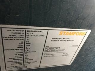Lot #2569: Stamford Skid Mounted Generator c/w Single Phase, 20 KVA. M05A07096-1. Control # 8473.