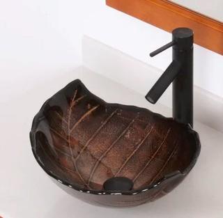 Lot #6463: Hot Melted and Hand Painted Glass Autumn Leaf Shaped Bow Vessel Bathroom Sink