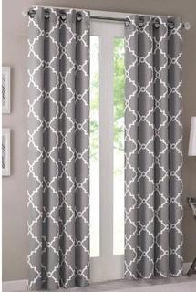 Lot #8286: Madison Park Saratoga Fretwork Print Grommet Top Window Curtain Panel Living Room Bedroom and Dorm Drape 50x95 Grey