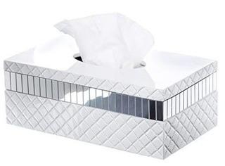 Lot #6820:     Quilted Mirror Tissue Box Cover Rectangular (10.4" x 6.8" x 3.75") - Decorative Bath Tissues Paper Napkin Holder- Resin Rectangle Napkins Container- Bottom Slider- For Elegant Bathroom D?cor