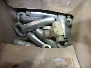 Lot #0955: 8' Tow Straps, Pindle Hitch, Oil Filters, 1-1/2x 13"Bolts, Filters, Wheels and Bearings, Pins, Hydraulic fittings. Electrical Pole Insulator