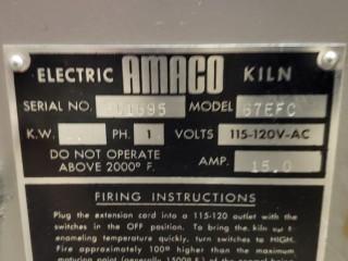 Lot #1009: AMACO Electric Kiln, Model 67EFC, 1.8KW, 120VAC, 15 Amp. S/N # FC1695