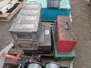 Lot #1085: Lot of Assorted Ammo Storage Boxes & (1) Hand Tool Box.