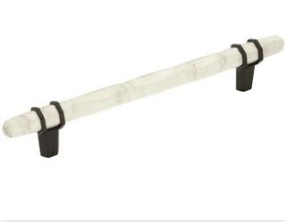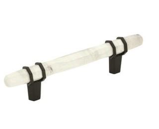 Lot #6452: (6) Amerock Carrione 6-5/16in(160mm) Center-To-Center Marble Pull; (10)Carrione 2-1/2 in (64 mm) Length Marble White/Black Bronze Cabinet Knob (9) Carrione 3-3/4" Center to Center Cabinet Pull Marble White and Black Bronze Finish