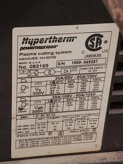 Lot #0467: Hypertherm Powermax 1000. SN 1000-049257. *Note: Amp And Arc Control Switch Missing*
