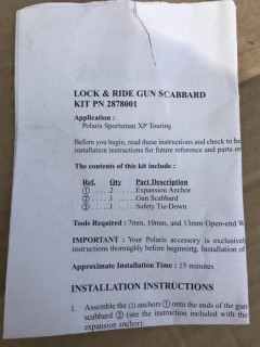 Lot #0326A: Lock And Ride Gun Scabbard Anchor For Polaris Sportsman P/N 2878001