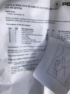 Lot #0326B: Lock and Ride Gun Scabbard Anchor Polaris Sportsman. P/N 2875783