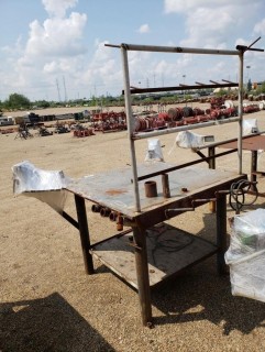 Lot #0570: 4' X 4' Steel Table C/w (2) Vises And Rod Oven