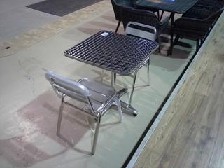 Lot #1661: Brushed Aluminum Finish Patio Table C/W (2) Chairs.