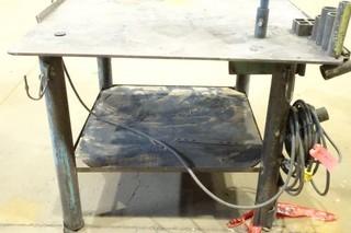 Lot #2381: 4' X 4' Welding Table C/w (2) Vises