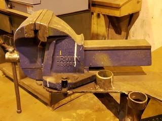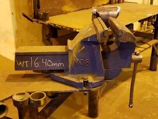 Lot #2438: 4' X 4' Welding Table C/w (2) Vises