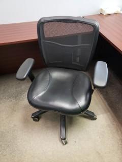 Lot #2818: Contents Of Office C/w L-Shape Wood Desk, (2) Task Chairs, Side Chair *Note: Phone Not Included*
