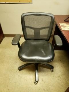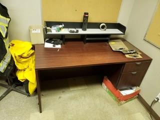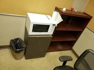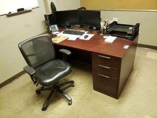 Lot #2808: Contents of Office C/w Wood Desk (2), Microwave, Task Chairs (2), **Note, Monitors, Phone, Computers Not Included**