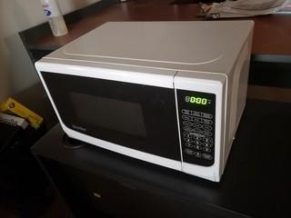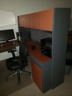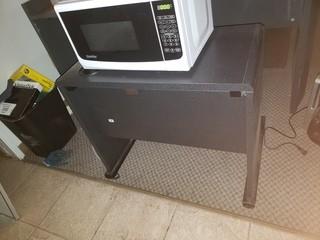 Lot #2850: U-Shaped Desk & Hutch, Task Chair, Microwave, Side Table ***Note: Phone, Monitor, Computer Not Included***