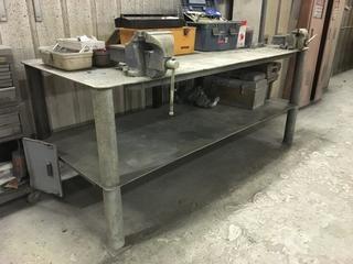 Lot #2236:     36 " X 7' X 36" Metal Table  W/ 6" & 4" Vises.