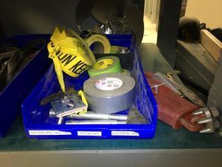 Lot #2152:     Quantity of Tape, Wire, Pins, Pipe Clamp, Valve.