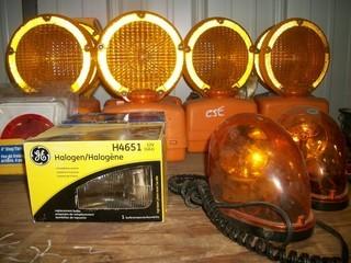 Lot #1105: Qty Of (10) Construction Blink Lights C/w (2) Beacon Lights, (4) Magnet Lights, Head & Tail Lights And Wire