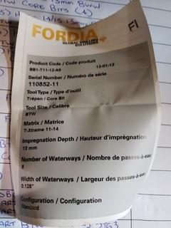 Lot #3115: Qty of (4) Fordia Xtreme 11-14 8ww Core Bits