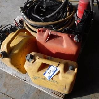 Lot #1637: (2) Fire Extinguishers, (3) Jerry Cans, Jumper Cables, (2) Fuel Hoses