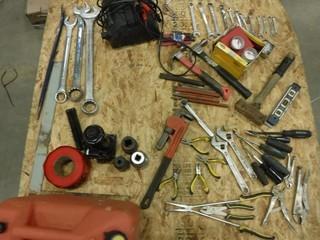 Lot #1535: Assorted Shop Tools Includes Pliers, Vice Grips Wrenches, Battery Charger, Gas Can and More, *Located RW12*