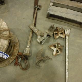 Lot #1728: Hitch c/w Equalizer Bars, 100' Plus 1" Manila Rope, 6" Pulley, 12' Chain and Hooks, *Located Outside*