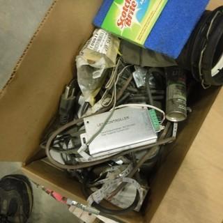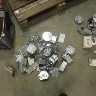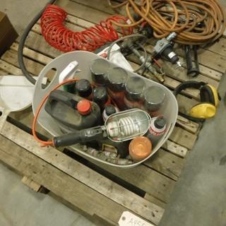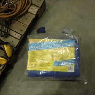 Lot #1185:     Quantity of Electrical Boxes, (2) 12 FT x 16 FT Tarps (Plastic), Assortment of Spray Polish Air Hoses and Misc. *Located RE23*
